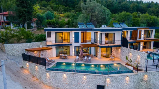 Kaş Pınarbaşı mevkiide bulunan villa, 3 yatak odasıyla 6 kişilik konaklama kapasitesi sunmaktadır. Kalabalık aileler ve arkadaş grupları tarafından tercih edilen villa, havuz alanı korunaklı bir yapıya sahiptir.