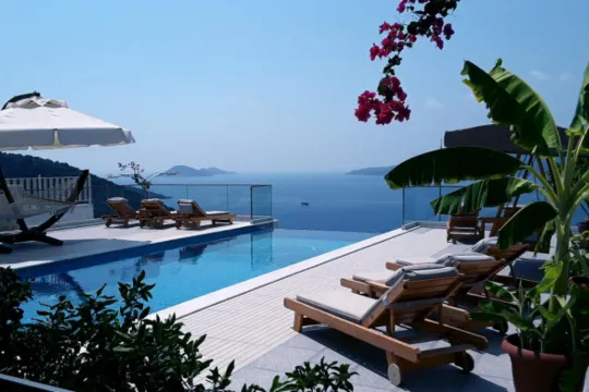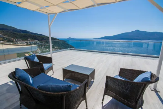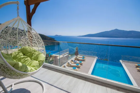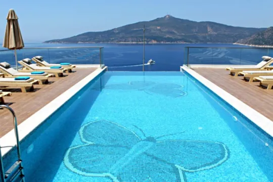 Villa Blue Butterfly Kalkan Kışla mevkiinde bulunmaktadır. Konum olarak sessiz sakin bir noktada bulunan villamız ful deniz manzaralıdır ve denize 100 metre mesafededir. Villada 7 Yatak odası olup 13 kişi rahatlıkla tatilini villamızda geçirebilir; Tüm yatak odalarımızda duş bulunmaktadır; 5 Yatak odamızın doğrudan denizi gören geniş balkonu vardır. Villamızda 2 adet jakuzi bulunmaktadır. Villamızın her katında ve havuz başında internet erişim imkanınız mevcuttur. Villamızda 25 Kw lık tam otomatik bir jeneratör, 60 Kw lık yine tam otomatik regülatör, villa içi ve dışı elektronik güvenlik ve alarm sistemleri siz misafirlerimizin huzuru için bulunmaktadır. Ayrıca arzu edildiği taktirde eşanjör sistemi ile havuz ısıtma sistemimiz de vardır. Yine çocuklarımız için salonda her biri profesyonel ölçülerde bir adet langırt ve bir adet hava hokeyi mevcuttur.