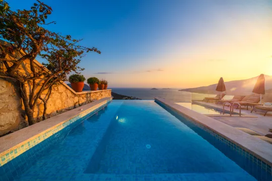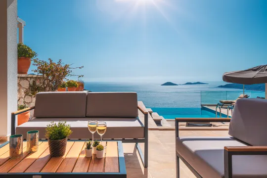 Kalkan Kalamar mevkiinde bulunan villa, 4 yatak odasıyla 8 kişilik konaklama kapasitesi sunmaktadır. Deniz manzarasına sahip olan villa, kalabalık aile ve arkadaş grupları için uygun seçenekler arasındadır.