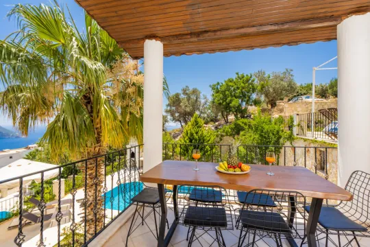 Kalkan merkezde yer alan 3 yatak odalı ve 6 kişilik konaklama kapasitesine sahip lüks bir villadır. Masmavi deniz manzarası ile villa; geniş aileler ve kalabalık arkadaş grupları için uygun bir villadır.