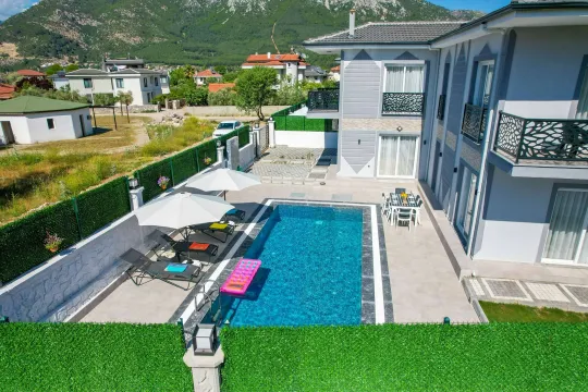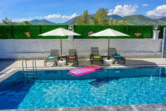 Fethiye Yeşil Üzümlü mevkiinde bulunan villa 4 yatak odasıyla 8 kişi konaklama kapasitesine sahiptir. Korunaklı havuz bahçe alanı ile balayı çiftleri ve çekirdek, geniş aileler için ideal seçenekler arasındadır.