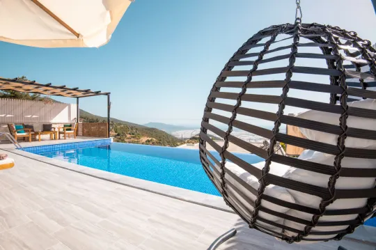 Kalkan Çavdır mevkiinde bulunan villa 2 yatak odası ile 4 kişilik konaklama kapasitesi sunmaktadır. Korunaklı havuz alanına sahip olup kalabalık aile ve arkadaş gruplarının popüler seçenekleri arasında üst sıralarda yer almaktadır.