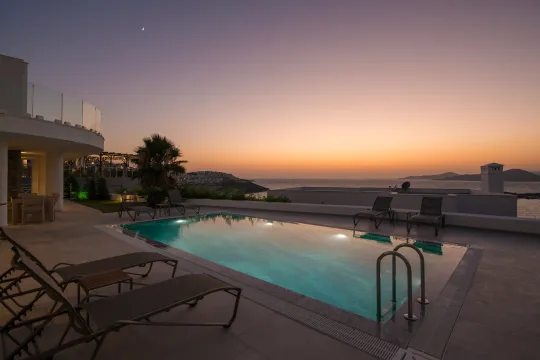 Villamızın havuzunda yüzerken, masmavi Ege Denizi'nin ve muhteşem Bodrum manzarasının keyfini çıkaracaksınız. Akşamüstleri gün batımını izlerken, kendinizi adeta sonsuz bir huzurun kollarında hissedeceksiniz. Villamızın iç tasarımı, modern ve sofistike bir tarzda özenle dekore edilmiştir. Büyük cam pencereler sayesinde doğal ışık, her anınızı aydınlatırken, açık plan düzeni ise ferah bir yaşam alanı sunuyor.