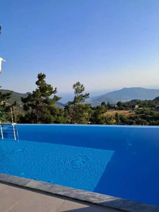 Muhteşem manzaraya karşı, güneşlenip yüzebileceğiniz havuz terasında kapasiteye uygun şezlong takımı, oturma grubu bulunmakta ve konforlu bir tatil imkanı sunmaktadır. Yine havuz terasına açılan oturma odası ve donanımlı açık mutfağı; bir yatak odasında çift kişilik yatak, ebeveyn banyosu, jakuzi; ikinci yatak odasında iki tek kişilik yatak, ebeveyn banyosu bulunmaktadır. Özenle dekore edilmiş detayları sizleri memnun edecek, sevdiklerinizle ayrıcalıklı bir tatilin keyfini sürebileceksiniz.