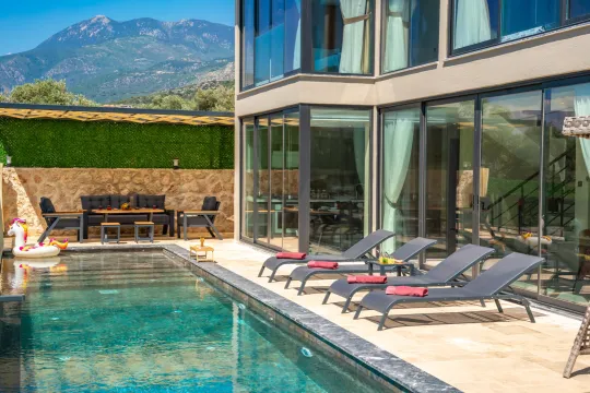 Villa Colomia, modern ve şık tasarımıyla dikkat çeken, 2 yatak odalı lüks bir tatil villasıdır. Ebeveyn odasında yer alan özel jakuzi, tatilinize romantik ve rahatlatıcı bir dokunuş katar. Villanın iç mekânı, zarafet ve konforu birleştirerek size evinizin rahatlığında bir konaklama sunar.