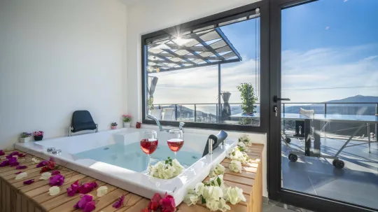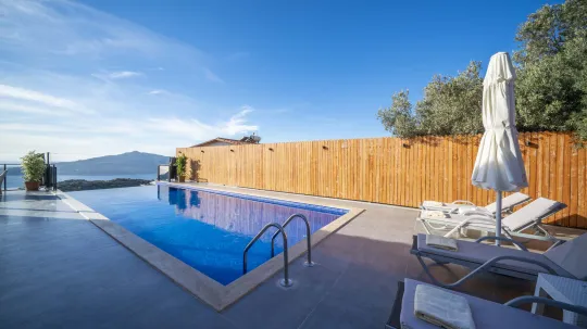 Masmavi deniz manzarasına ve şık bir tasarıma sahip villa bünyesinde kapasiteye uygun mobilyalar, ihtiyacınız olan tüm araç-gereçleri barındıran Amerikan tarzda, modern mutfak ve iki adet yatak odası mevcuttur. Konforunuz odaklı tasarlanan villanın tüm yatak odalarında klima ve özel kullanım banyo/wc bulunmaktadır. Ebeveyn suit yatak odasında günün yorgunluğunu atmanızı ve tatilin keyfini çıkarmanızı sağlayacak bir adet jakuzisi de bulunmaktadır.Korunaklı havuz terası ve müstakil bahçesinde kapasiteye uygun şezlong ve şemsiye, oturma alanı, salıncak, yemek masası, barbekü ve çocuklar için oyun alanı da bulunmaktadır.