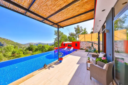Kalkan İslamlar mevkiinde bulunan villa 1 yatak odası ile 2 kişilik konaklama kapasitesi sunmaktadır. Korunaklı havuz alanına sahip olup balayı çiftlerinin popüler seçenekleri arasında üst sıralarda yer almaktadır.