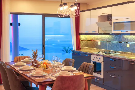 Eşsiz deniz manzarası ve şık tasarıma sahip villa bünyesinde kapasiteye uygun mobilyalar, ihtiyacınız olan tüm araç-gereçleri barındıran Amerikan tarzda, modern mutfak ve 2 adet yatak odası mevcuttur. Konforunuz odaklı tasarlanan villanın tüm yatak odalarında klima ve özel kullanım banyo/wc bulunmaktadır. Ayrıca villanın ebeveyn yatak odasında günün yorgunluğunu atmanızı ve tatilin keyfini çıkarmanızı sağlayacak 1 adet jakuzisi de bulunmaktadır. Villanın korunaklı havuz terası ve bahçesinde kapasiteye uygun şezlong ve şemsiye, oturma alanı, yemek masası ve barbekü alanı bulunmaktadır.