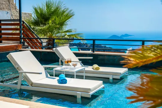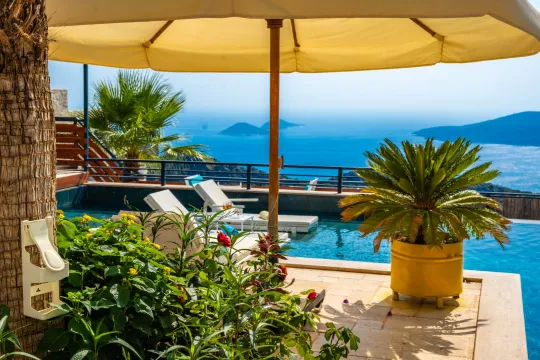 Kalkan kördere mevkiide bulunan villamız 5 yatak odalı 10 kişi konaklama kapasiteli panoramik deniz manzaralı tatil villasıdır. Villamızın bütün yatak odalarında muhteşem deniz manzarası vardır. Villamızda bir adet jakuzi bulunmaktadır. Villamızda amerikan mutfak ve salon bulunmakta olup bütün odalarda deniz manzaralı teras bulunmaktadır.