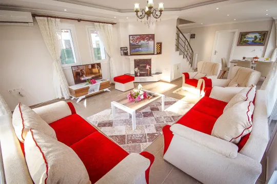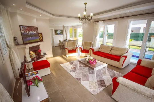Şık ve konforlu bir tasarımı bulunan villamızın içerisinde misafirlerimizin memnuniyeti düşünülerek tüm detaylar düşünülmüştür. Geniş ve yeşil bir bahçesi bulunan villamızda, çocuklu aileler ve kalabalık gruplar rahatlıkla konaklamalarını gerçekleştirebilir.Çiftlikköy Mevkiinde yer alan villamız Fethiye merkeze yaklaşık olarak 15 km mesafede yer almaktadır. Bu bölgede Kargı Çayı geçmekte olup portakal bahçelerinin çok olduğu bir yerdir. Bölgede sadece Türkiye'de yetişen Günlük ağacı ormanı bulunmaktadır. Eşsiz tatil için ideal bir konum olan bölge bu özellikleri sayesinde tercih sebebi olacaktır.Villamızın içerisinde toplam dört adet yatak odası ve üç adet banyo bulunmaktadır. Birinci yatak odası içerisinde çift kişilik yatak, klima ve WC-Duş, jakuzi bulunmaktadır. Diğer iki yatak odasında iki adet tek kişilik yatak ve klima, son yatak odasında ise çift kişilik yatak ve klima bulunmaktadır. Salonda klima, mutfak ve TV bulunmaktadır. Ortak kullanım iki adet WC-Duş bulunmaktadır.