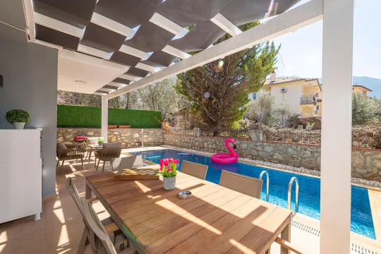Villa Frappuccino, Fethiye Ovacık bölgesinde konumlanan özel havuzlu, oldukça şık ve konforlu bir şekilde döşenmiş villamızdır. Villamız, çocuklu aileler ve kalabalık gruplar için ideal bir seçenektir. Konforlu ve rahat bir iç tasarımı bulunan villamız, market ve restoran gibi seçeneklere oldukça yakın konumda yer almaktadır.