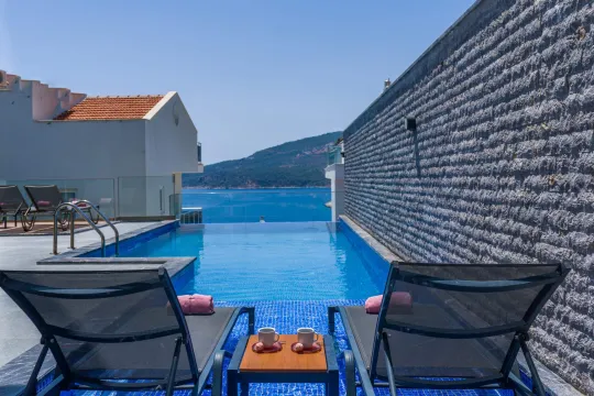 Kiralık tatil villamız, Kalkan Mahallesi'nde yer almaktadır. Doğa ile iç içe olan tatil villamız, deniz manzaralı bir villadır. Villa Hill Derry , merkeze ortalama 2 km mesafede bulunmaktadır. Villanın havuz terası oldukça keyif alabileceğiniz tarzda dekore edilmiştir.