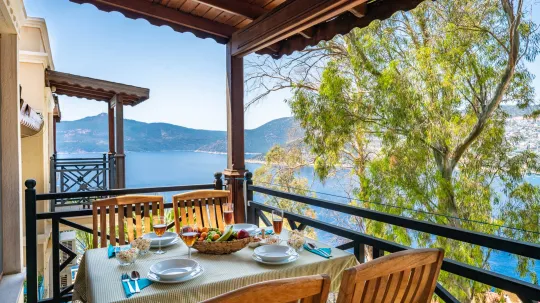 Kalkan Kışla mevkiinde bulunan villa 2 yatak odasıyla 4 kişilik konaklama kapasitesi sunmaktadır. Balayı çiftleri ve çekirdek aileler için oldukça uygundur. Korunaklı havuz ve bahçe alanına sahiptir.