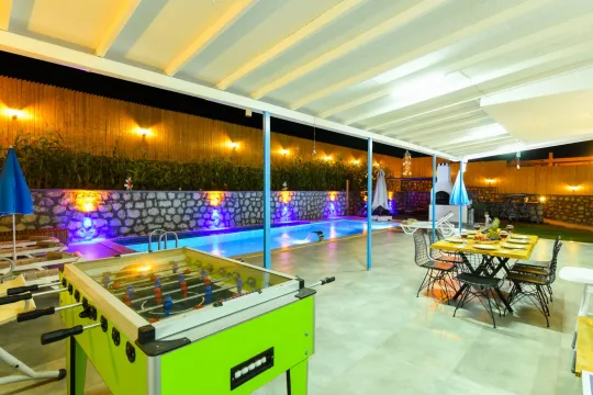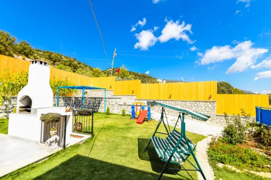 Doğa içinde konumlanan villamızın geniş bir verandası, özel bahçesi ve özel havuzu bulunmaktadır. Villlamızın verandasında barbekü, masa tenisi ve langırt; bahçesinde ise çocuk oyun parkı, salıncak ve çardak bulunmaktadır. Etrafı korunaklı olan villamız, muhafazakar tatil için idealdir. iki katlı villamızın üç adet yatak odası bulunur. Bir odasında jakuzi yer almaktadır. Ayrıca villamızın geniş bir balkonu bulunmaktadır.