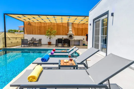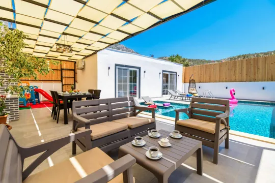Villamız, Kalkan Ulugöl bölgesinde, 2 yatak odalı, 4 kişi kapasiteli, muazzam konumuyla kiralık yazlık tatil villası seçeneklerimizden biridir. Villamızın süit yatak odasındaki jakuzisi ile tatilinize ayrıcalık katacaktır. Villamız merkeze yakın konumda olması ile aracınızla kolaylıkla ulaşım sağlayabilirsiniz.