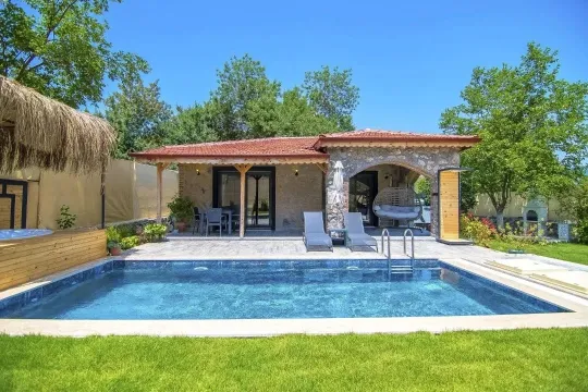 Kayaköy’ün sakinliği, eşsiz doğası, bol oksijenli havası misafirlerimize eşsiz, keyifli bir tatil ortamı sunmaktadır. Villa Kula’un içerisinde 1 adet süit yatak odası mevcuttur. Yemyeşil bahçesinde korunaklı özel yüzme havuzu, çardak altında jakuzi, damla salıncak, BBQ ve güneşlenme terası bulunmaktadır. Balayı çiftleri, evlilik yıldönümü kutlayan çiftler ve muhafazakar balayı çiftleri için ideal tatil villasıdır.