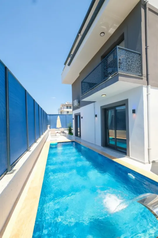 Villanın özel havuzu, sıcak yaz günlerinde serinlemek ve eğlenmek için harika bir seçenektir. Dikdörtgen şeklindeki havuzun 7 metre uzunluğu, 3 metre genişliği ve 1.40 metre derinliği, hem yüzme keyfi yaşamanıza hem de rahatlamanıza olanak tanır. Korunaklı olmasa da, villanın etrafındaki doğal bitki örtüsü ve sığla ile narenciye ağaçları, size huzurlu ve özel bir atmosfer sunar. Bu doğal güzellikler arasında ayrıcalıklı bir tatilin keyfini çıkarabilirsiniz.