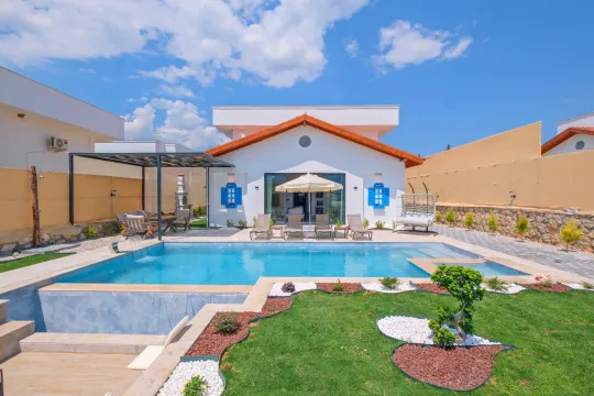 Muğla Seydikemer Çaltıözü bölgesinde, 4 yatak odalı ve 8 kişilik konaklama kapsitesi ile çocuklu kalabalık aileler için güzel bir villadır , yemyeşil bahçesi ve şık iç tasarımı ile kalabalık aileler için ideal bir tatil villasıdır.