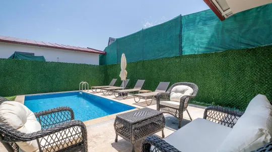 Fethiye Çiftlik mevkiinde bulunan villa 2 yatak odasıyla 4 kişilik konaklama kapasitesi sunmaktadır. Villa balayı çiftleri ve çekirdek aileler için oldukça uygun bir villadır.