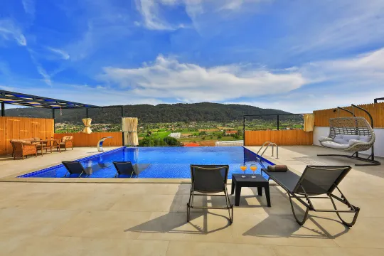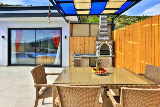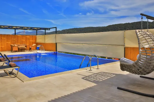 Kalkan Sarıbelen mevkiiinde bulunan, 2 yatak odalı ve 5 kişilik konaklama kapasitesine sahip bir villadır. Çocuk havuzu ve jakuzi gibi lüksleri bulunan doğa içerisinde, korunaklı bir yapıya sahip villa; muhafazakar aileler ve çiftler, çekirdek aileler ve balayı çiftlerin uygun bir villadır.