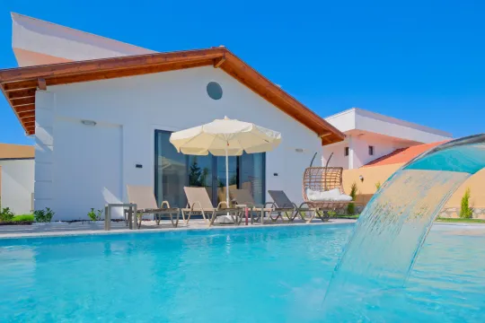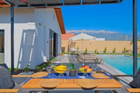 Muğla Seydikemer Çaltıözü bölgesinde, 4 yatak odalı ve 8 kişilik konaklama kapsitesi ile çocuklu kalabalık aileler için güzel bir villa, yemyeşil bahçesi ve şık iç tasarımı ile kalabalık aileler için ideal bir tatil villasıdır.
