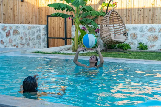 Kalkan Patara mevkiinde bulunan villa 2 yatak odasıyla 4 kişilik konaklama kapasitesi sunmaktadır. Korunaklı havuz alanına sahip olup villa, balayı çiftlerinin popüler tercihleri başında gelmektedir.