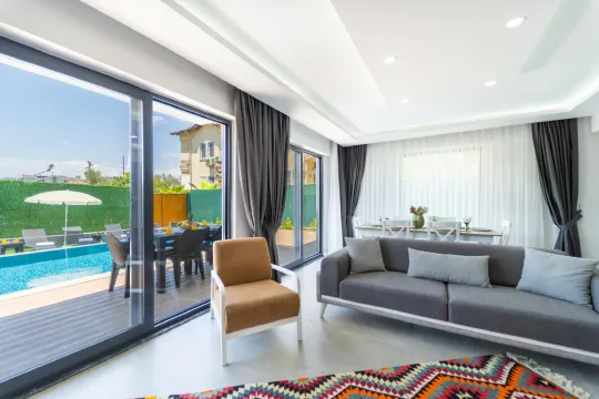 Merkezi bir konumda yer alan villa bünyesinde kapasiteye uygun mobilyalar, ihtiyacınız olan tüm araç-gereçleri barındıran Amerikan tarzda,modern mutfak ve üç adet yatak odası mevcuttur. Konforunuz odaklı tasarlanan villanın tüm yatak odalarında klima ve özel kullanım banyo/wc bulunmaktadır. Villanın geniş havuz terası ve müstakil bahçesinde yine kapasiteye uygun şezlong ve şemsiye, oturma alanı, yemek masası ve barbekü alanı mevcuttur.