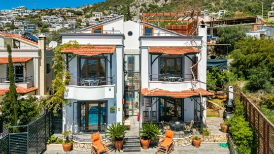 Kalkan Kızıltaş mevkiinde bulunan villa, 4 yatak odasıyla 10 kişilik konaklama kapasitesi sunmaktadır. Villa arkadaş grupları ve kalabalık odalar için uygundur.