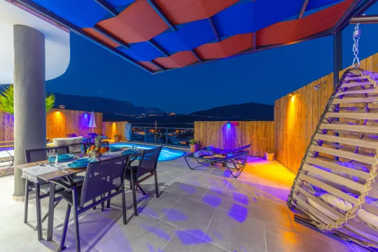 Kalkan Yeşilköy mevkiinde bulunan villa 2 yatak odasıyla 4 kişilik konaklama kapasitesi sunmaktadır. Balayı çiftleri ve çekirdek aileler için oldukça uygundur. Korunaklı havuz ve bahçe alanına sahiptir.