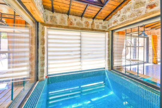 Şehrin gürültüsünden ve stresinden uzaklaşacağınız, tüm yılın yorgunluğunu atabileceğiniz çocuk oyun alanı, kapalı ısıtmalı havuz, jakuzi ve türk hamamı bulunmaktadır. Böylece dört mevsim tatil imkanı sunmaktadır. Havuz alanına açılan konforlu oturma odası ve tam donanımlı açık mutfağı; birinci yatak odasında çift kişilik yatak, jakuzi ve ebeveyn banyosu; ikinci yatak odasında iki tek kişilik yatak ve banyo bulunmaktadır.