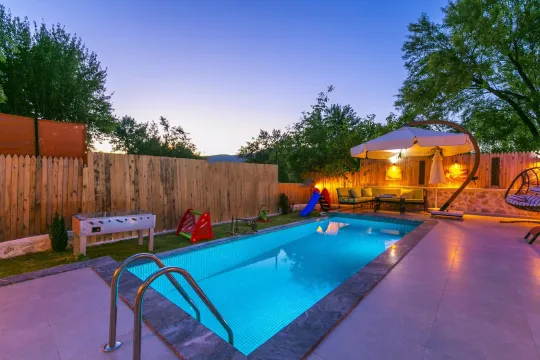 Geniş bir havuz bahçe alanına sahip olan villanın, konumu da turizm noktalarına rahatlıkla ulaşabileceğiniz uzaklıktadır. Tek bir bölgeye bağlı kalmak istemeyen, pek çok plajı ve doğa harikalarını görüp deneyimlemek isteyen misafirlerimizin tercihleri başında gelen bir bölgedir. Doğayla iç içe, kargaşa ve kalabalıktan uzak; turizm merkezlerine rahat bir sürüş ile ulaşabileceğiniz bölgedir.