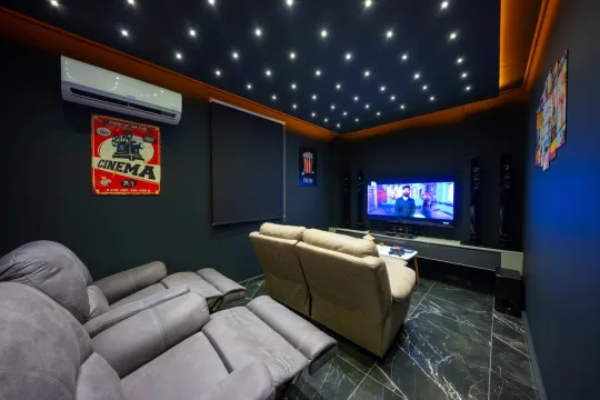 Havuz terasında yer alan masa tenisi ve langırt ile keyifli vakitler geçirebilir, havuz terasında yer alan salıncakta yaz esintisini hissedebilirsiniz. Ayrıca Villada sinema odası, oda içi jakuzi, playstation, masa tenisi, langırt, her odada tv gibi tatiliniz esnasında keyifli vakit geçirebileceğiniz hizmetler yer almaktadır. Villa, ihtiyaçlarınıza tam karşılık verecek donanıma sahiptir.Villamız tam donanımlı bir sinema odasına sahiptir, Geniş oturumlu rahat yatabilen çift kişilik ve tek kişilik koltuklar, Büyük Ekran LCD TV, 5 + 1 sinema sistemi, Blue-Ray DVD oynatıcı, CD, USB, veyaBilgisayardan Film, Dizi, Video Seyretme İmkanı, Play Station 4 ve çift oyun kolları mevcuttur.