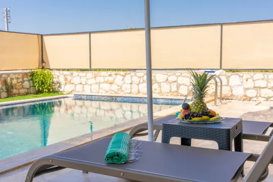 Kaş Çukurbağ mevkiinde konumlandırılan villamız 3 yatak odasıyla 6 kişilik konaklama kapasitesi sunmaktadır. Kısmi korunaklı havuz alanı sayesinde ailenizle birlikte huzurlu bir tatil geçirebileceğiniz villamızın oldukça konforlu bir alanı bulunmaktadır. Ayrıca Jakuzi alanı yer alan villa ihtiyaçlarınız gözetilerek özenle dizayn edilmiştir.