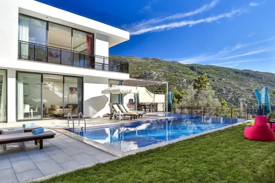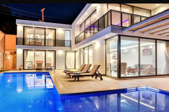 Kalkan İslamlar mevkiinde bulunan villa, 3 yatak odasıyla 6 kişilik konaklama kapasitesi sunmaktadır. Korunaklı havuz alanına sahip olan villa, muhafazakar tatil için ideal seçeneklerden bir tanesi olup kalabalık aile ve arkadaş grupları için uygundur.