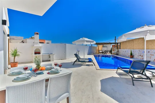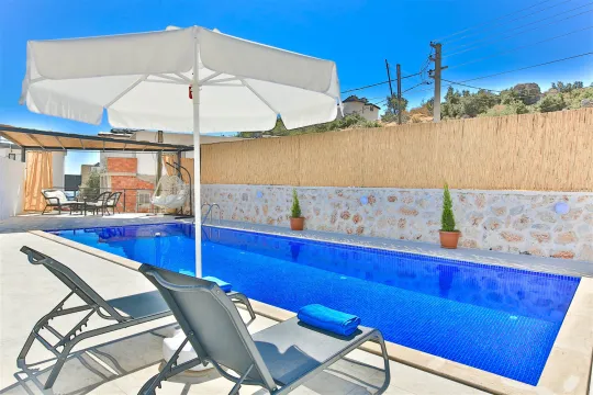 Kalkan Kördere Mevkii'nde konumlanan, yatak odasında jakuzi ve özel havuz alanına sahip, 4 kişilik konaklama kapasitesiyle balayı çiftleri ve çekirdek aileler için ideal villalarımız arasında yer almaktadır. Doğayla iç içe konumu ile bütün yılın yorgunluğunu atmak, huzurlu bir tatil deneyimi yaşamak isteyen misafirlerimiz için eşsiz bir tercih olacaktır. Verandasında bulunan salıncak, modern oturma alanı ve barbekü ile keyifli vakitler geçirmek isteyen tatilcilerimize unutulmaz bir tatil deneyimi sunmaktadır.