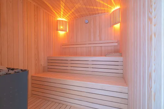 2. Yatak Odası: 2 Adet tek kişilik yatak, elbise dolabı, komodin ve klima bulunmaktadır. Koridorda ortak WC-banyo ve sauna bulunmaktadır.