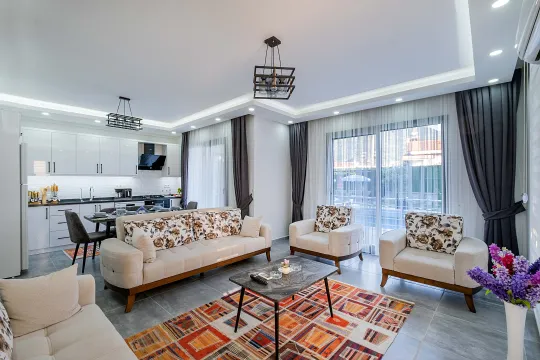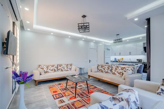 Salon: Konforlu oturma grubu, LCD TV, uydu alıcı, klima ve havuz terasına çıkış bulunmaktadır.