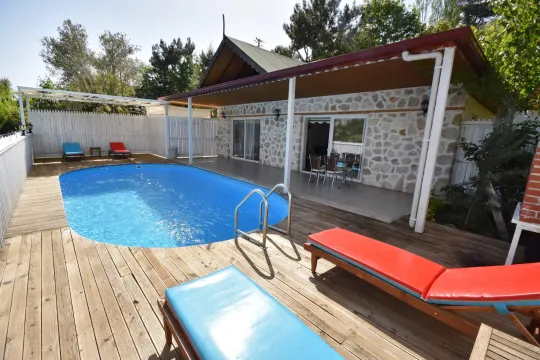 Kalkan İslamlar mevkiinde bulunan, 2 yatak odalı ve 4 kişilik konaklama kapasitesine sahip doğa içerisinde konumlandırılmış doğa manzarasına sahip bir villadır.
