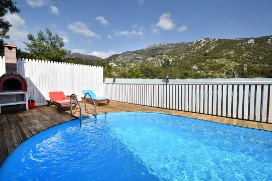 Villanın havuz bahçe katı korunaklı olduğu için balayı çiftleri ve mahremiyetine önem veren aileler için ideal bir tercihtir. Çocuklu ailelere keyifli ve güvenli bir tatil imkanı sunan villamızda çocuk oyun alanı bulunmaktadır. Taş mimarisi ve lüks dizaynı ile göz kamaştıran villamızda ebeveyn yatak odasında şık bir jakuzi mevcuttur.