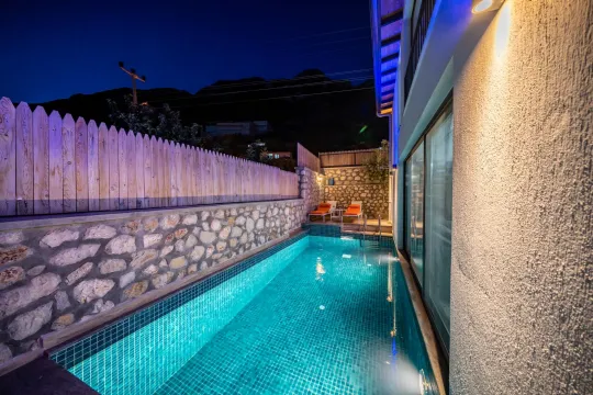 Kalkan Kördere mevkiinde bulunan villa, 2 yatak odasıyla 4 kişilik konaklama kapasitesi sunmaktadır. Doğa, şehir ve kısmen deniz manzarasına hakim, genişliği ve şıklığı ile göz dolduran villa, balayı çiftleri ve çekirdek aileler için idealdir.