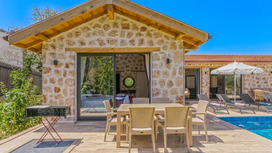 Kalkan Sarıbelen mevkiinde bulunan, 2 yatak odalı ve 5 kişilik konaklamaya sahip bir villadır.Çift kişilik jakuzisi gibi lüksleri doğa içerisinde bulunan, korunaklı bir yapıya sahip villa; muhafazakar odalar ve çiftler, çekirdek hücreleri ve balayı çiftlerin uygun bir villadır.