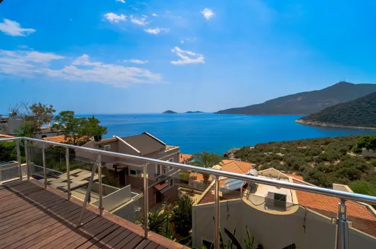 Kalkan Kalamar mevkiinde bulunan villa, 3 yatak odasıyla 6 kişilik konaklama kapasitesi sunmaktadır. Deniz manzarasına sahip olan villa, kalabalık aile ve arkadaş grupları için uygun seçenekler arasındadır.