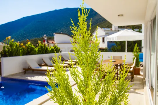 Villa , tatilini konfor ve şıklıkla geçirmek isteyenler için ideal bir seçenektir. Özel yüzme havuzunda serinleyebilir, geniş terasta deniz manzarası eşliğinde kahvaltınızı yapabilir ya da gün batımında keyifli akşam yemekleri düzenleyebilirsiniz. Modern mutfağı, şık salonu ve konforlu yatak odaları ile evinizin rahatlığını yaşarken, doğanın ve denizin tadını çıkarabilirsiniz. Lüks detaylarla donatılmış bu villa, romantik bir kaçamak yapmak isteyen çiftler, huzurlu bir tatil arayan aileler ya da arkadaş grupları için mükemmel bir seçenektir. Kalkan’ın büyüleyici atmosferinde unutulmaz bir tatil deneyimi yaşamak için Villa, sizleri bekliyor!