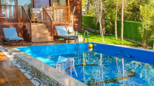 Villa Venussa, Kalkan İslamlar bölgesinde konumlanmakta olan muhteşem yeşilliklerle kaplı doğa manzarasına hakim kiralık villalarımız arasında yer almaktadır. Otantik bir şekilde dizayn edilen villamızda 2 adet yatak odası bulunmakta olup, 4 kişiye konaklama imkanı sağlamaktadır. Yatak odalarından bir tanesinin içerisinde küvet yer almaktadır. Havuz ve havuz terası korunaklı hale getirilen yazlık villamızı muhafazakar aileler gönül rahatlığı ile tercih edebilirler. Hayallerinizin de ötesinde keyif dolu bir yazlık villada tatil için Villa Venussayı tercih edebilirsiniz.