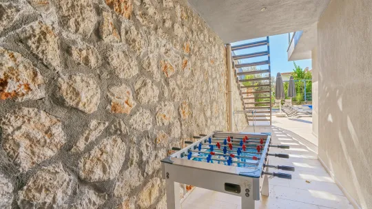 Deniz, doğa ve şehir manzarasına karşı, güneşlenip yüzebileceğiniz havuz terasında kapasiteye uygun şezlong takımı, oturma grubu masa tenisi ve barbekü ile keyifli bir alan sunan villanın, yine havuz terasına açılan ferah oturma odası ve tam donanımlı açık mutfağı; bir yatak odasında çift kişilik yatak, ebeveyn banyosu ve jakuzi, ikinci yatak odasında çift kişilik yatak ve ebeveyn banyosu; üçüncü yatak odasında çift kişilik yatak ve ebeveyn banyosu ve dördüncü yatak odalasında iki tek kişilik yatak ve ebeveyn banyosu bulunmaktadır.