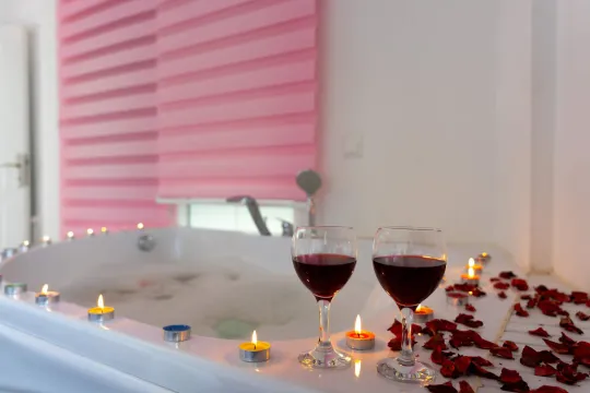 Villamızın içerisinde iki adet yatak odası ve iki adet banyo bulunmaktadır. Birinci yatak odası içerisinde çift kişilik yatak, klima, banyo ve jakuzi bulunmaktadır. İkinci yatak odası içerisinde iki adet tek kişilik yatak, klima ve banyo bulunmaktadır. Salon kısmında mutfak, klima ve televizyon bulunmaktadır.