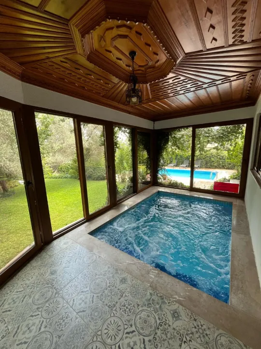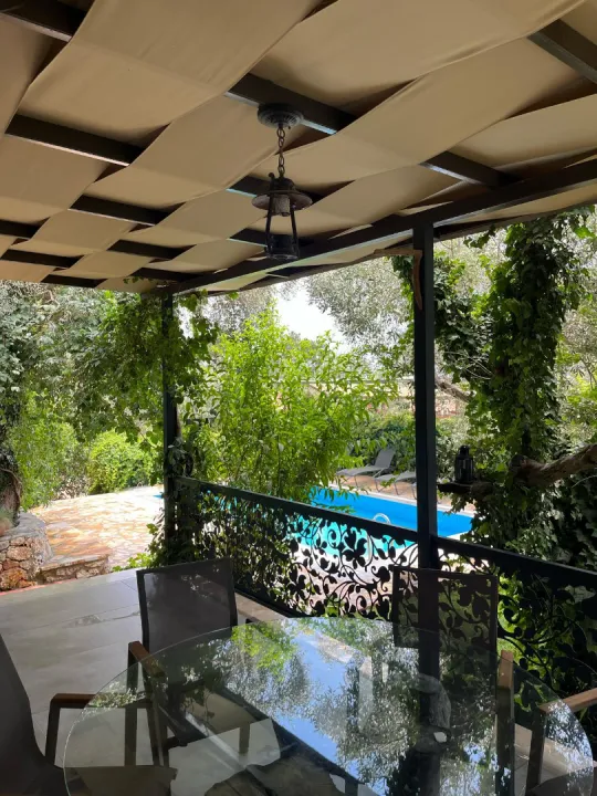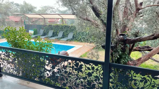 Özel havuza ve bakımlı çim bir bahçeye sahip olan villamızın havuz etrafı branda ile çevrildiğinden tamamen korunaklıdır ve dışarıdan kesinlikle görünmemektedir.